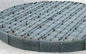 下装式丝网除沫器是一种气液分离装置。气体通过除沫器的丝网垫,可除去夹带的雾沫。下
